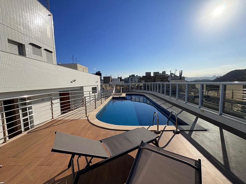 Lazer completo na cobertura. Tudo isso a poucos passos do mar da Praia da Costa.