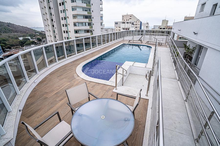 Andar alto, frente e lazer completo na cobertura. Tudo isso a poucos passos do mar da Praia da Costa.
