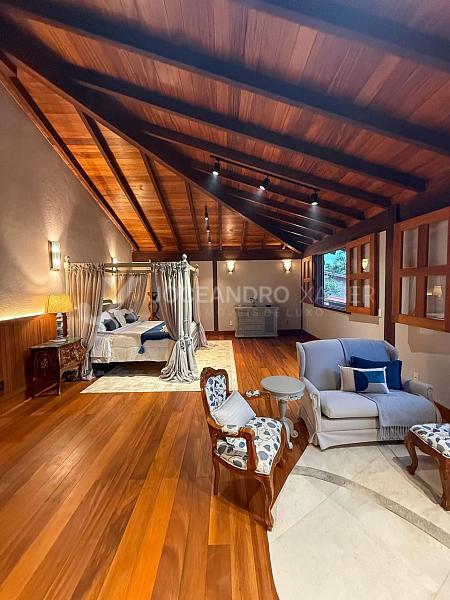 Em um terreno de 2.000m², com 1.300m² de área construída, esta mansão impressiona pela harmonia entre a arquitetura rústica e moderna, com uso marcante de madeiras nobres, criando uma atmosfera sofisticada, acolhedora e atemporal.