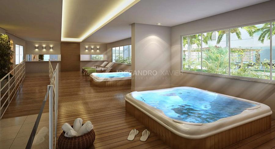 Com 330 m² de área privativa, esta cobertura oferece uma das vistas mais privilegiadas da Praia de Itaparica.